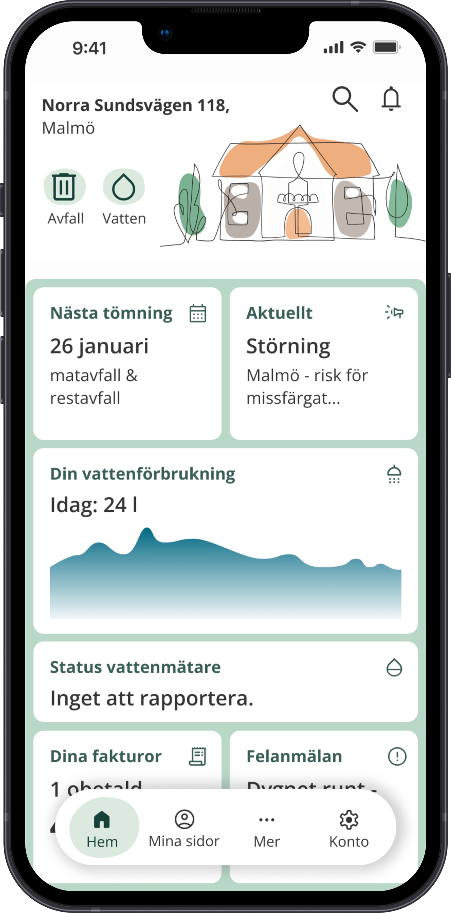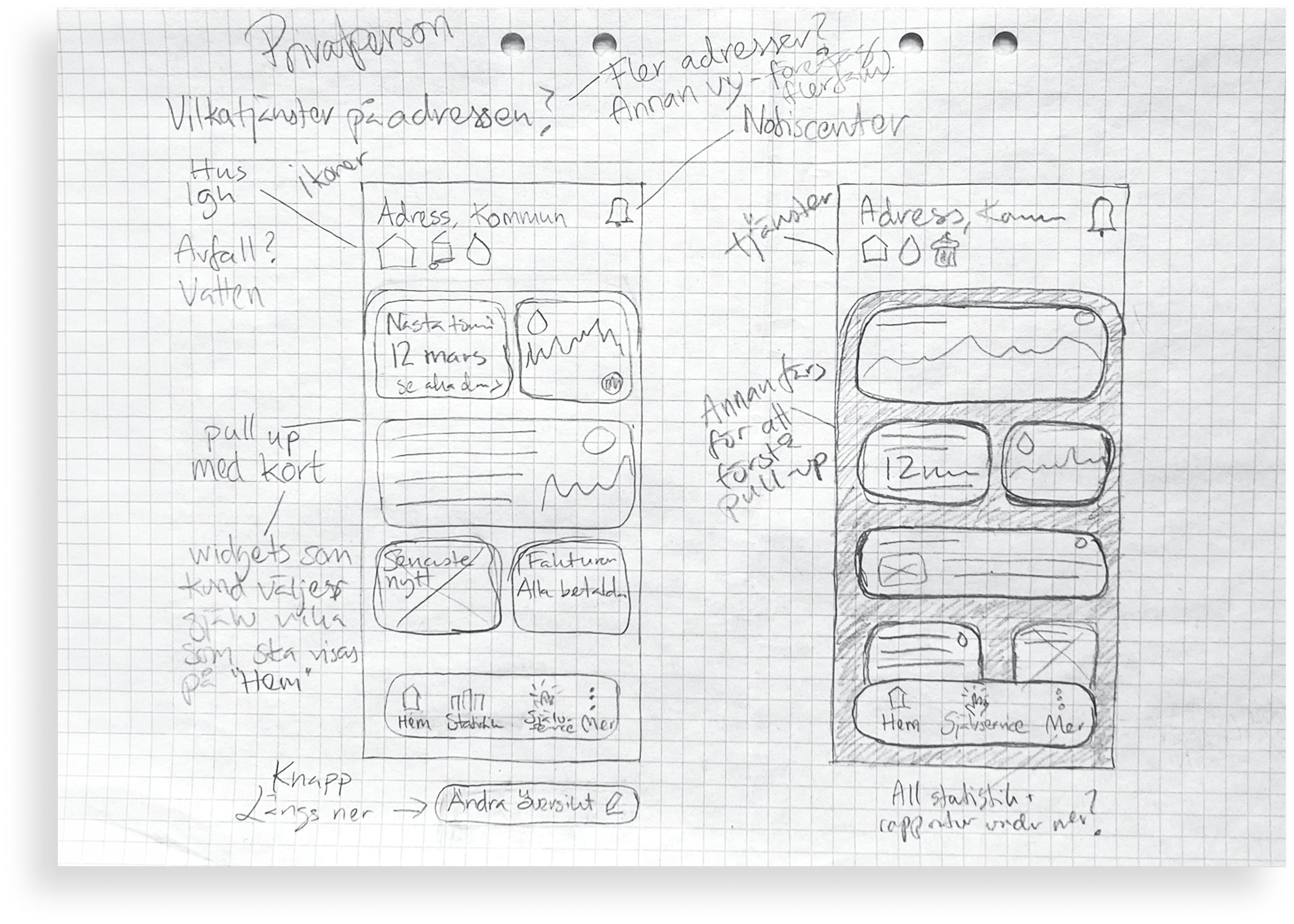 A challenging part of this project was to motivate why their customers should use the app in the first place, rather than the well-known website. Due to the fact that VA SYD is a municipal actor, their customers are forced to use VA SYD as their water supplier and waste collector, so we needed to make the app easy to use in a fun way that adds true value.