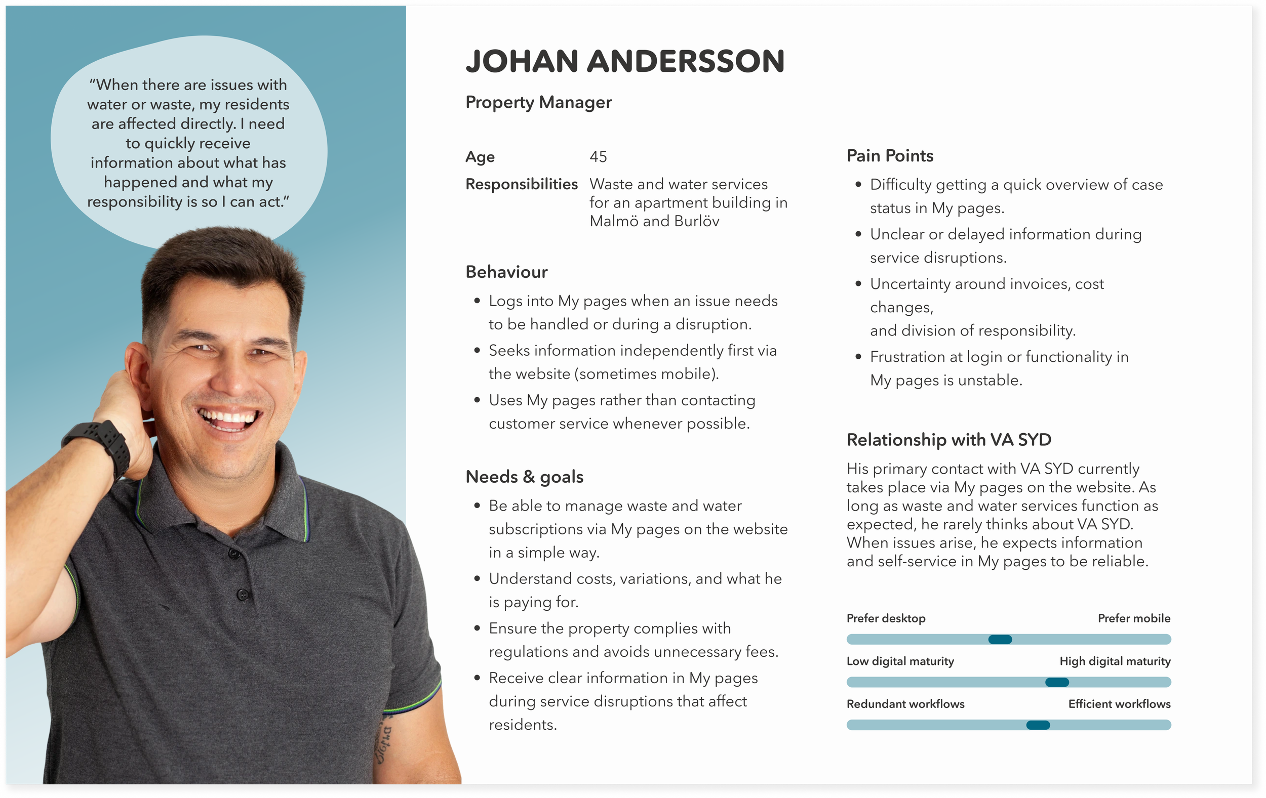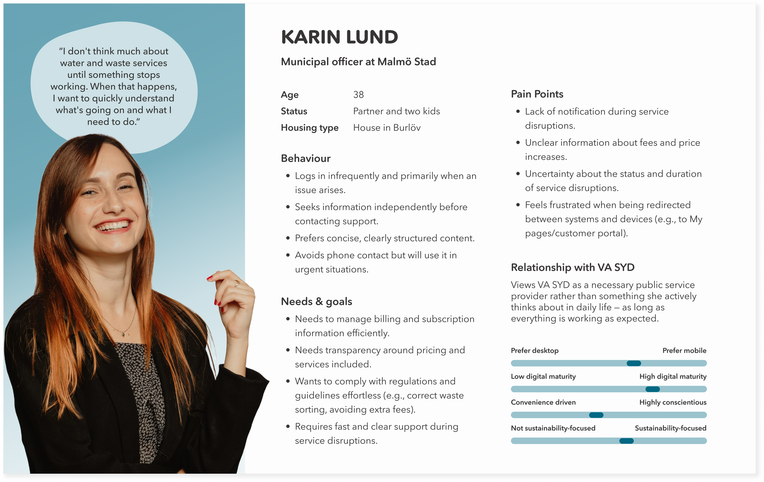 To future-proof and ensure the app would be scalable, we created a second persona that targets business owners’ employees that has the responsibility for the water and waste contracts.
